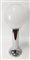 Lampada da appoggio in metallo cromato con diffusore sferico in vetro soffiato incolore lattimo. Italia, anni '70. (h cm 74)