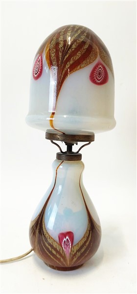 Lampada da tavolo in vetro policromo imitante lo stile Art Nouveau. Anni '70/'80. (h cm 39) (lievi difetti)