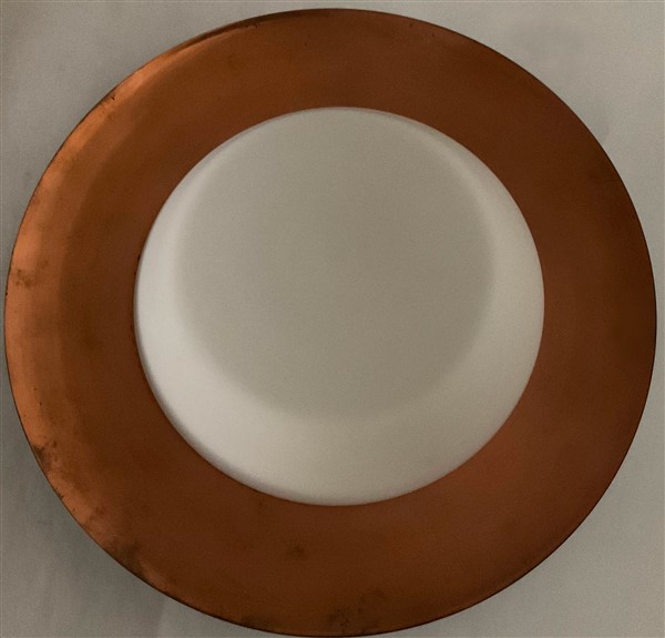 Plafoniera in vetro incamiciato lattimo e rame. Italia, anni '50/'60. (d cm 40) (lievi difetti)