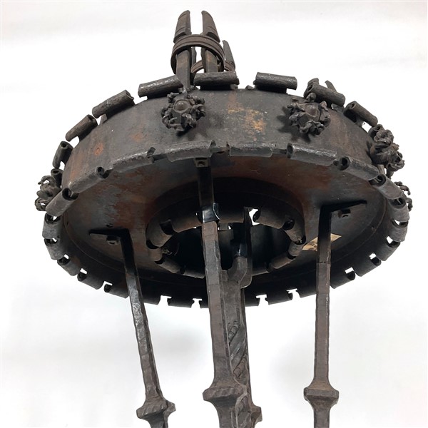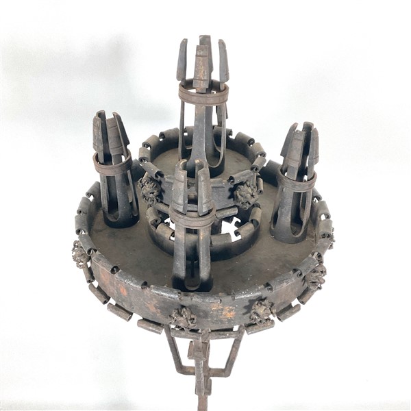 Manifattura lombarda Portaceri in ferro battuto a cinque fiamme su corona circol