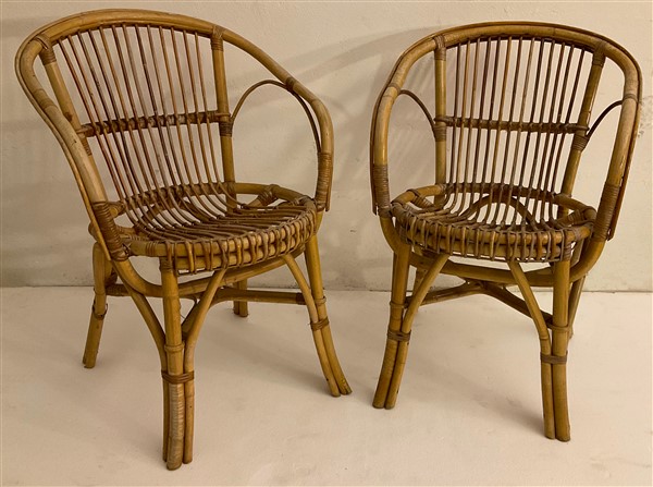 Coppia di poltrone da veranda in manao scortecciato e malacca. Italia, anni '60. (cm 55x80x51) (difetti)