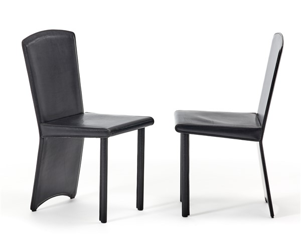 Coppia di sedie rivestite in pelle. Italia, anni '90. (cm 37x85,5x46)