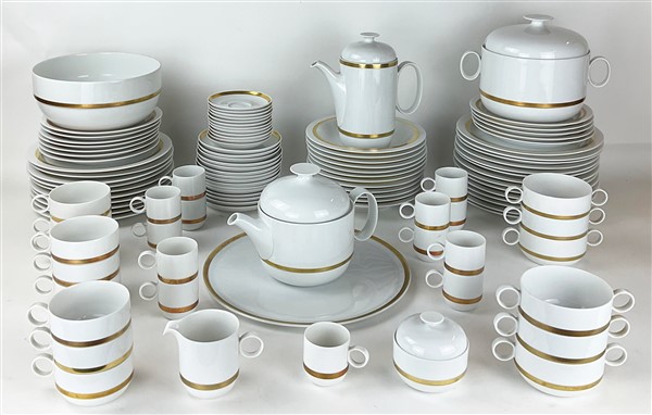 Parte di servizio della serie "Studio-Linie". Esecuzione Rosenthal, Germania, anni '70. Porcellana profilata in oro zecchino. Marcato e firmato sotto la base. (difetti)