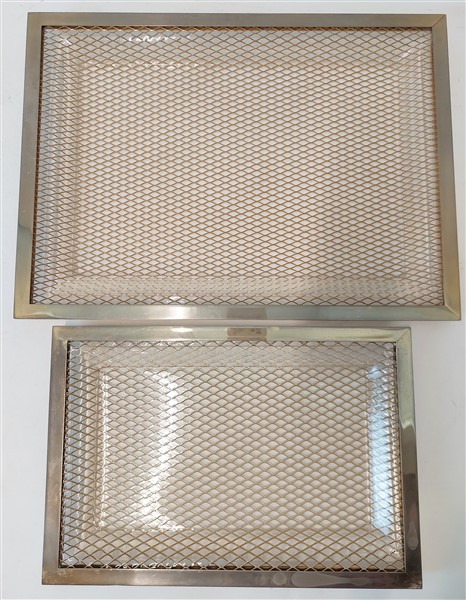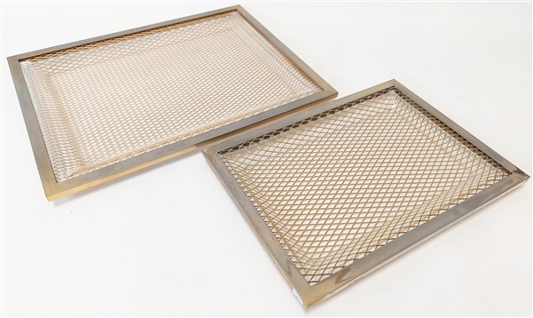 Due vassoi in ottone con piano in perspex. Italia, anni '80. (il grande cm 42x32; il piccolo cm 33,5x23,5)