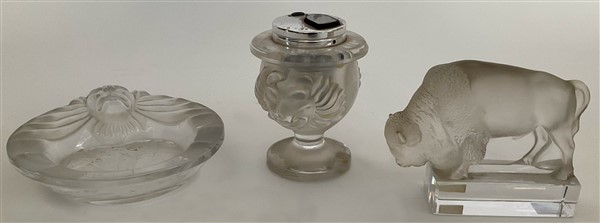 Lalique Lotto composto da un accendino da tavolo e un posacenere decorati a volt