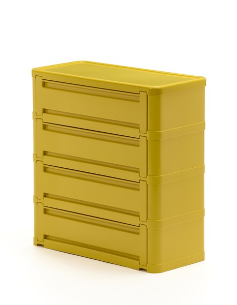 Mobile contenitore modello "4963". Produzione Kartell, Italia, anni '70. Plastica gialla. (cm 71x76x33,5)