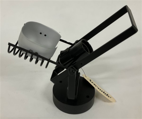 Faretto da parete modello "Sintesi". Produzione Artemide, Milano, anni '70. Metallo verniciato nero e grigio. Marcato sotto la base, recante etichetta cartacea. (h cm 28)