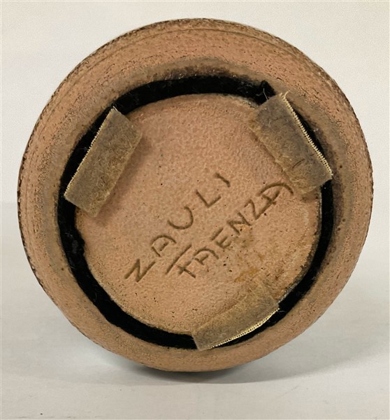 Vaso in terracotta smaltata nei toni del marrone. Faenza, anni '60/'70. Firma incussa sotto la base "ZAULI FAENZA". (h cm 25) (difetti e restauri)