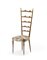 Sedia chiavarina in legno di faggio con schienale alto e doghe sagomate. Seduta rivestita in tessuto. Chiavari, anni '50/'60. (cm 42x119,5x43) (lievi difetti)