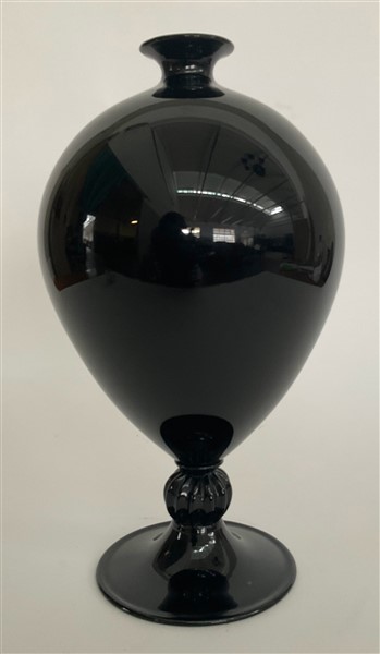 Vaso modello "Veronese". Secolo XX. Vetro soffiato ametista scuro. Firmato a punta sotto la base. (h cm 36)