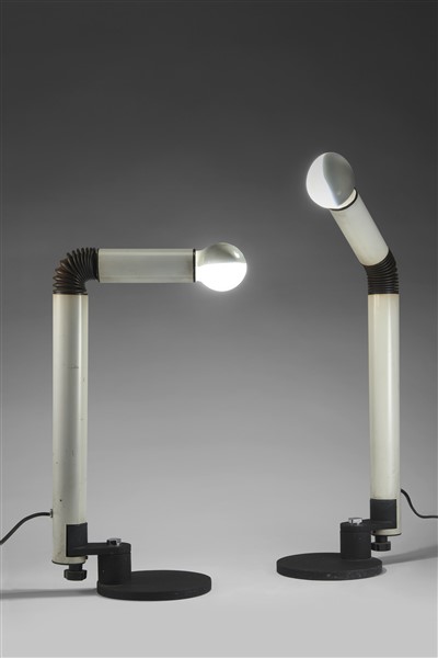 Coppia di lampade modello "Periscopio". Produzione Stilnovo, Milano, anni '60. Metallo laccato bianco. (h cm 61) (lievi difetti)