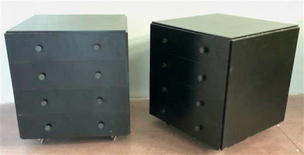 Arflex (Attribuito) Coppia di comodini in legno laccato e ottone brunito. Italia