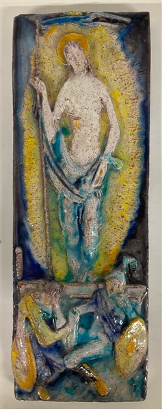 Ugo Lucerni "Ressurezione" Bassorilievo in terracotta smaltata in policromia. Fi