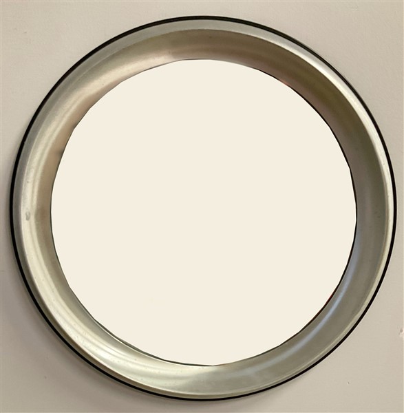 Specchio modello "Narciso". Produzione Artemide, Milano, anni '50/'60. Cornice in ottone nichelato. (d cm 62)