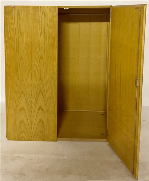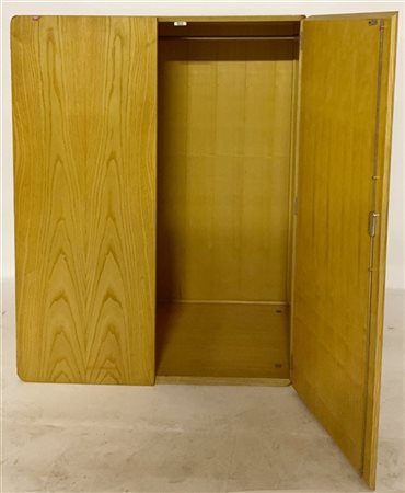 Armadio a due sportelli in legno chiaro massello e compensato. Anni '80. (cm 95,5x133x57) (difetti e mancanze)