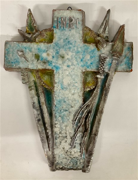 Ugo Lucerni "Crocefisso" Terracotta smaltata in policromia. Firenze, anni '50. F