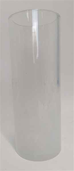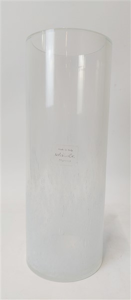Vaso cilindrico in vetro oplescente con inclusione di bolle. Murano, anni '70/'80. Recante etichetta adesiva. (h cm 36)