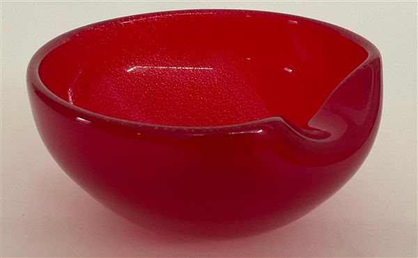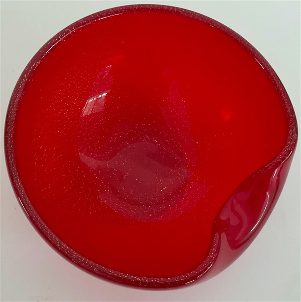 Ciotola in vetro soffiato rosso trasparente con applicazione di foglia d'oro Manifattura di murano per Tiffany &Co