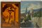 Lotto composto da tre dipinti di tecniche diverse e una tarsia in legni vari (cm max 30x20) Due in cornice