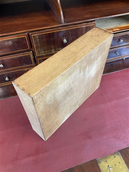 Secretaire lastronato e filettato in legni vari, fronte a due ante e un cassett