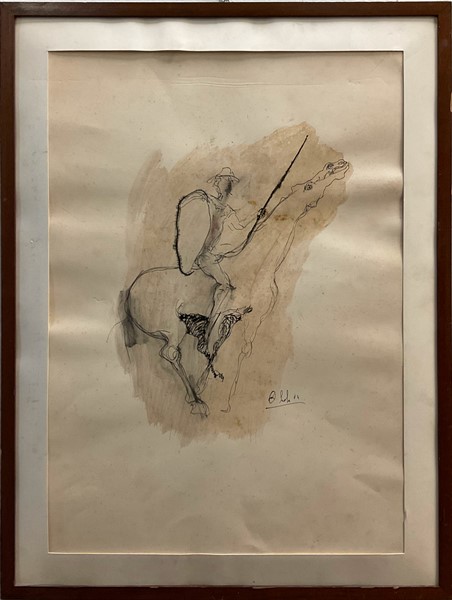 Lotto composto da una china acquerellata raffigurante Don Chisciotte e un acque