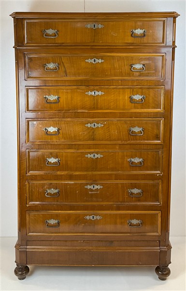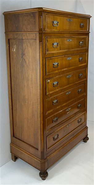 Settimanale in noce, a otto cassetti pannellati e piedi a cipolla. Inizio secol
