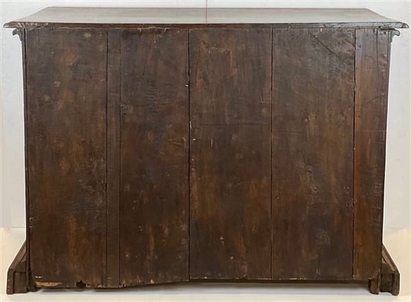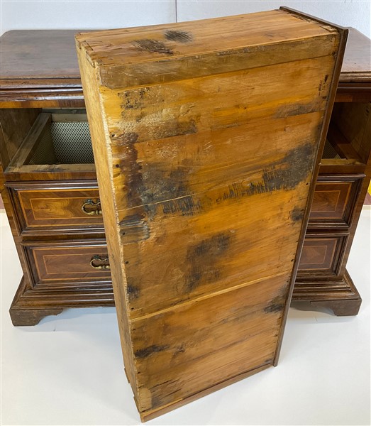 Cassettone con fronte e fianchi pannellati e lastronati con filettature in legn