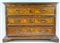 Cassettone con fronte e fianchi pannellati e lastronati con filettature in legni vari, a tre cassetti piu un tiretto sottopiano, piedi a mensola. (cm 168x113x66) (difetti, rifacimenti e restauri)