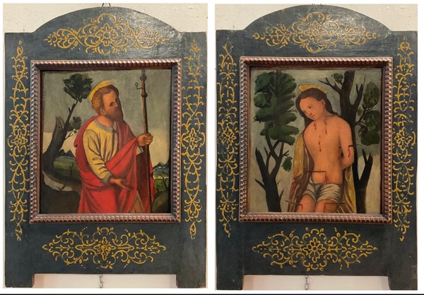 Ignoto, antichi dipinti raffiguranti "San Sebastiano" e "San Rocco" Due dipint