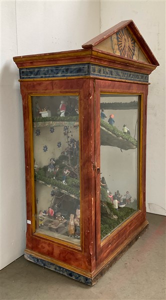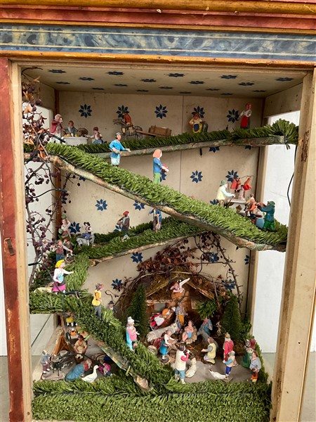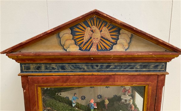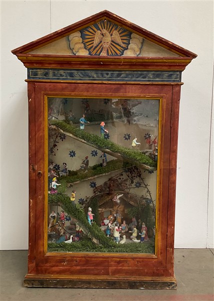 Lot 524 | Teca di forma architettonica in legno dipinto del secolo XIX contentente presep