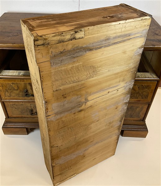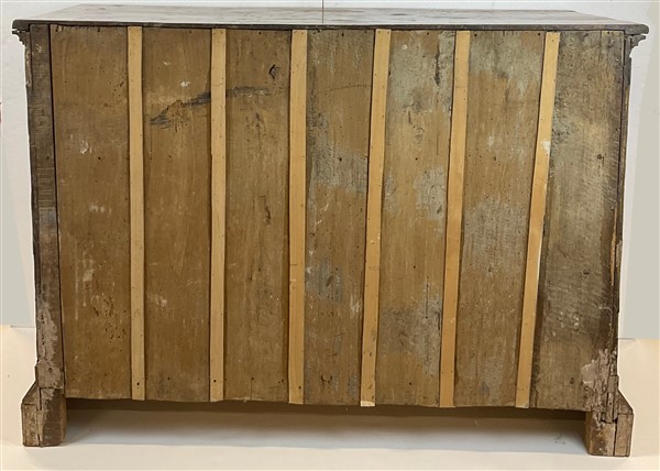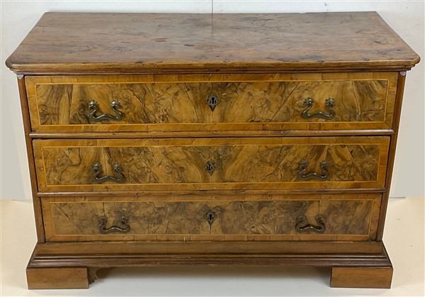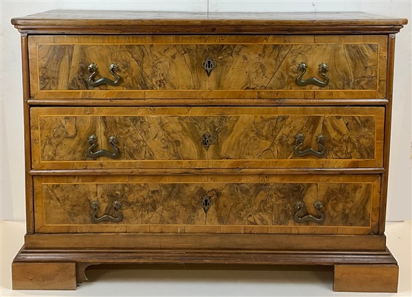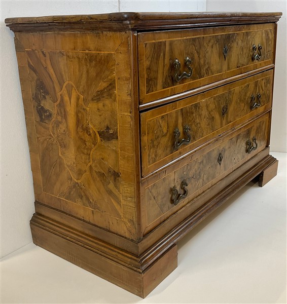 Lot 528 | Cassettone con fronte e fianchi lastronati in radica di noce e filettati, a tre