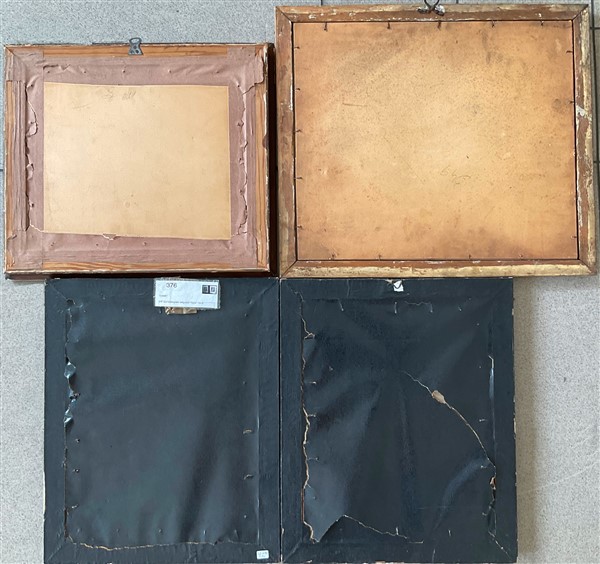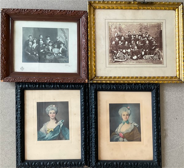 Lotto composto da due fotografie raffiguranti gruppi di persone e due riproduzioniraffiguranti ritratti femminili; misure diverse ( max cm 33x38) in cornice (difetti)