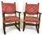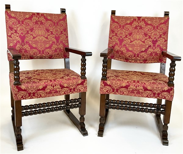 Coppia di antichi seggioloni in noce con braccioli e piedi lisci, gambe in part