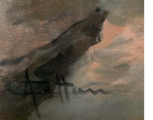 Achille Cattaneo "Naviglio al tramonto" olio su compensato (cm 60x50) Firmato i
