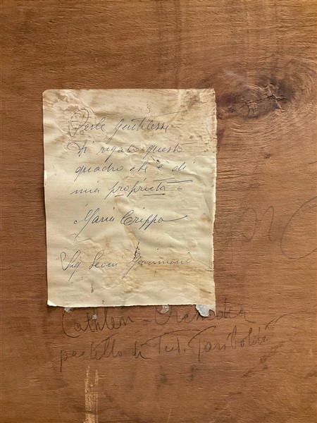 "vaso di orchidee" gessetti colorati su carta (cm 63x48), firmato in basso a sinistra, iscritto al retro