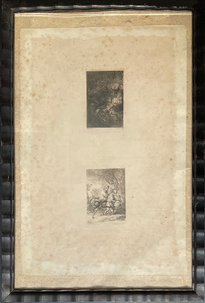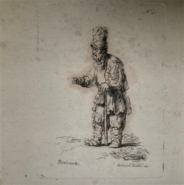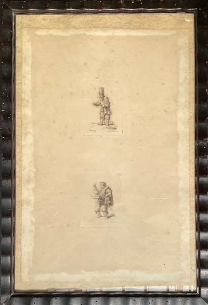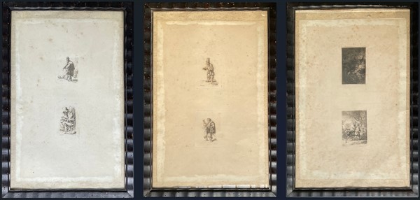 Francesco Novelli "Figure" Sei acqueforti da Rembrant (cm 8x6,5) in tre cornici (difetti)