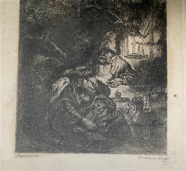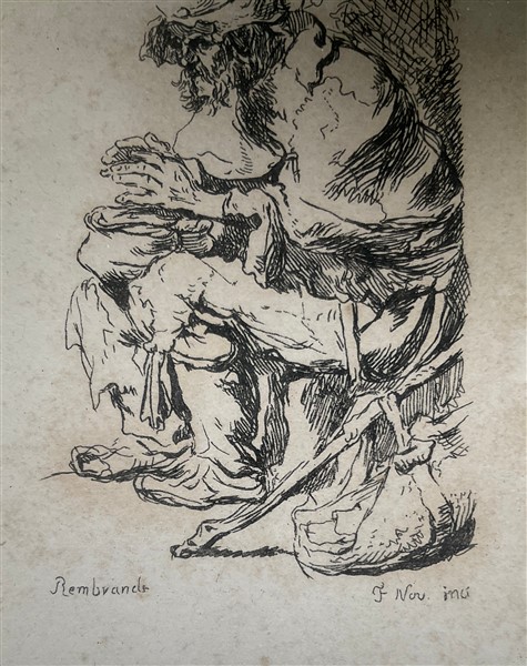 Francesco Novelli "Figure" Sei acqueforti da Rembrant (cm 8x6,5) in tre cornici