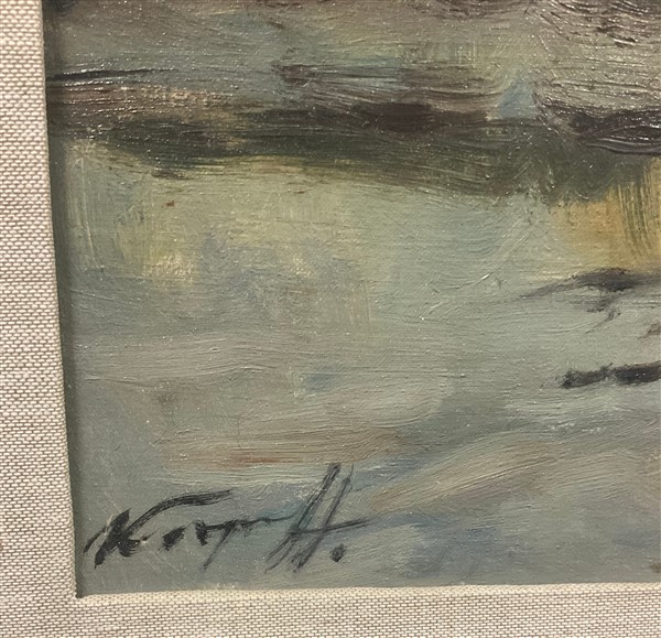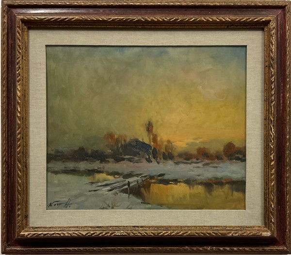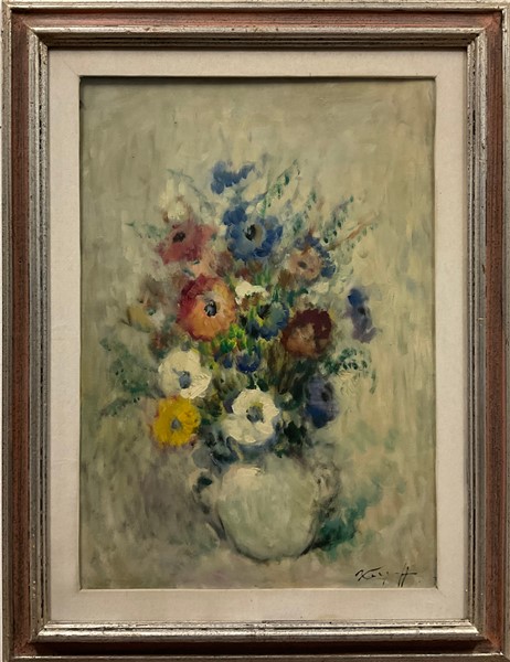 Ignoto del secolo XIX, Lotto composto da due dipinti ad olio su tela raffiguranti "Paesaggio innevato" e "Composizione con fiori", di diverse misure.