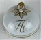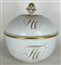 Manifattura di Meissen, secolo XIX. Zuppiera con coperchio di forma globulare con presa a fiore. Monogramma e bordure in oro (h. cm 29 ca.) (difetti)