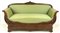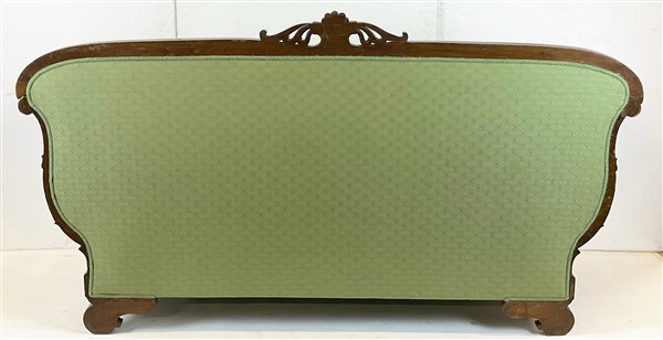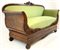 Divano a barca in mogano intagliato con cimasa a volute contrapposte e traforat