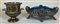 Lotto composto da fioriera in peltro sbalzato con decoro a volute fogliate, bac