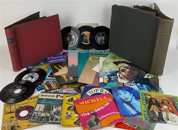 Lotto composto da diversi dischi da 33 e 45 giri di epoche varie, in un cartone