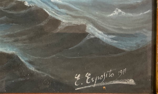 E. Esposito "S.Y. PATRICIA" dipinto raffigurante steam yacht nella burrasca (cm