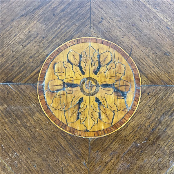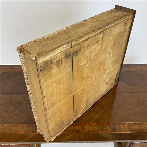 Lot 678 | Scrittoio da centro lastronato, filettato e intarsiato in legni di varie essenz