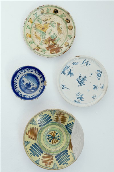 Lotto composto da un piatto, due ciotole ed un'alzata in maiolica di manifattur