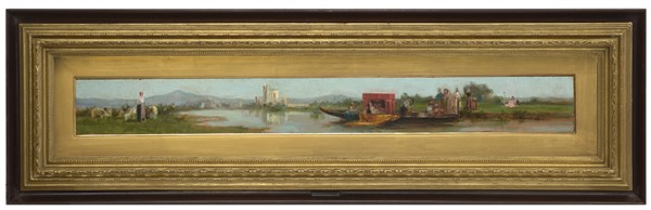 Enrique Serra y Auque (Attr.) "Nella laguna pontina" olio su compensato (cm 8