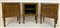 Coppia di comodini a due cassetti e un mobiletto con vano a giorno impiallaccia