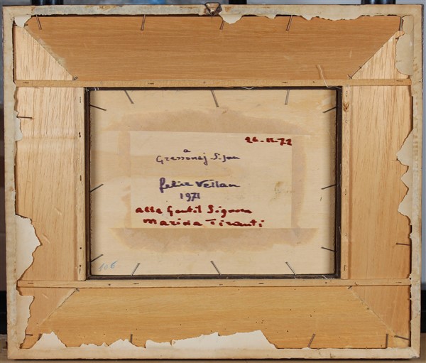 Felice Vellan "Passeggiata a cavallo" olio su compensato (cm 17,5x23,5) firmato