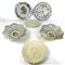 Manifatture differenti. Lotto composto da due antichi piatti in maiolica dipinta in policromia, uniti a due piatti e due alzatine in terraglia (difetti e mancanze)