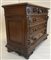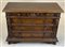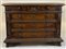 Cassettone in noce con fronte a quattro cassetti pannellati, montanti, pomoli e